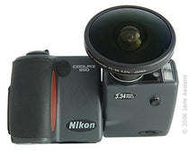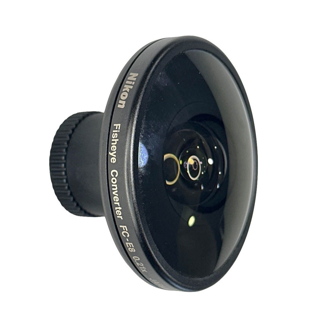 Nikon FC-E8 28mm Fisheye Converter Lens for Coolpix Cameras. The converter is simply screwed onto the existing, fixed lens of the Coolpix, and the fisheye settings in the camera menu will zoom the camera's lens to produce different views. (28mm thread size)